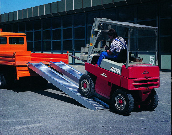 Wenn es darum geht, Baufahrzeuge und andere mittelschwere bis schwere Fahrzeuge über Rampen auf Transportfahrzeuge zu bewegen, kommt die qualitativ hochwertige Verladeschiene AVS 150 ins Spiel. Diverse Luftreifen- und Gummiketten-Fahrzeuge, wie Bagger, Radlader, Traktoren oder Raupen, lassen sich über diese AVS 150 Verladeschienen ohne großen Aufwand auf die jeweiligen Transportfahrzeuge befördern. AVS 150 Verladeschienen gibt es in starrer oder faltbarer Ausführung. Vier unterschiedliche Längen von ca. 269 bis 409 cm sind im Angebot. Je nach Länge liegen die entsprechenden Tragkraftwerte pro Paar zwischen etwa 4400 und 7700 kg bei Ausführung der Verladeschiene ohne Schutzrand, wobei ein Achsabstand von 2 m zugrunde gelegt wurde. Die AVS 150 gibt es ohne, mit oder mit einseitigem Rand. Die Fahrrinne bei Ausführung mit beidseitigem Rand misst 36 cm. Das Gewicht einer Verladeschiene beträgt je nach Länge zwischen 44 und 65 kg. Wie bei allen Altec Verladeschienen bedeutet dies ein erstklassiges Verhältnis von Belastungsmöglichkeit zum Eigengewicht. Ein weiterer Pluspunkt ist die verstärkte Anfahrfläche, die eine lange Lebensdauer der Schiene gewährleistet. Besonders erwähnenswert ist, dass die AVS 150 Verladeschienen auf Wunsch mit einem speziellen Federhebewerk ausgestattet und auch nachgerüstet werden können, was das Verladen erleichtert.