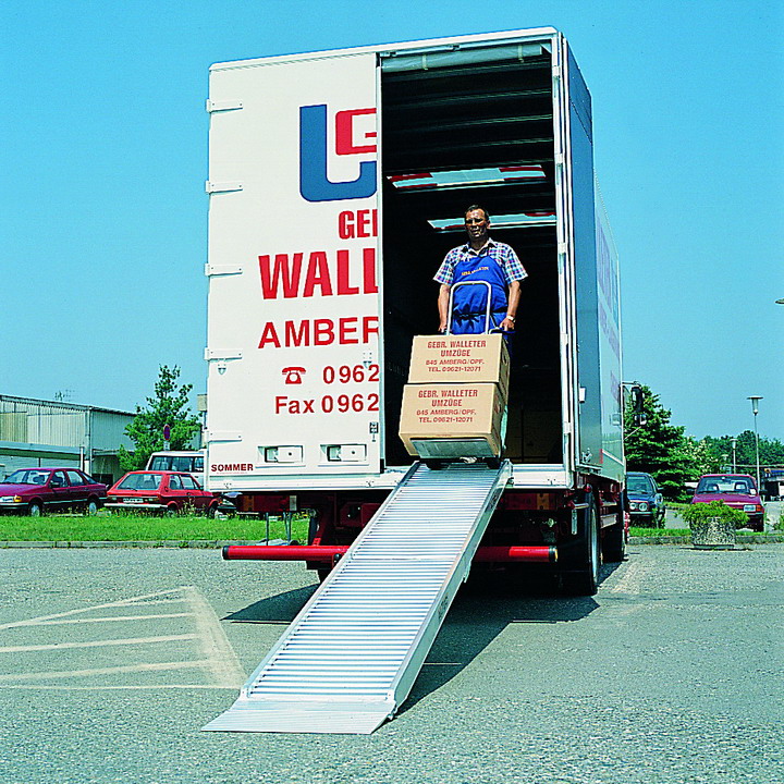 Diese Rampen sind für die Verladung von leichten bis mittelschweren Fahrzeugen wie Baumaschinen, Gartengeräten oder Rasentraktoren, die mit Luftbereifung oder Gummiketten ausgerüstet sind, geeignet.